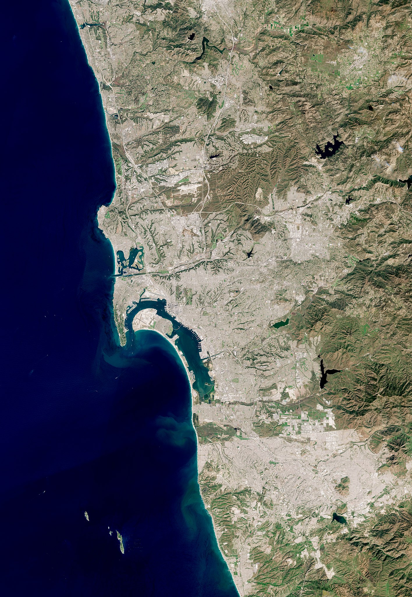 San Diego, located in southern California, is a coastal city known for its sunny weather, beautiful beaches, and rich cultural heritage. On the physical map, you can see the rolling hills of the coastal range, as well as the towering peaks of the Laguna Mountains in the east. The city is surrounded by beautiful bodies of water, including Mission Bay and San Diego Bay, both of which provide ample opportunities for boating, fishing, and other water-based activities.